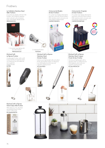 A lightweight frother with a soft touch handle and stainless steel rod. Requires two AA batteries (not supplied).