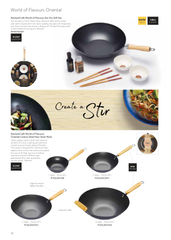 wok with a Quantum II non-stick coating, two pairs of chopsticks, two 10cm ceramic dip bowls, a 30g jar of Chinese five spice and a 50ml bottle of soy sauce. Sleeved.