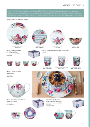 Inspired by the picturesque fishing village of Clovelly with its beautiful pebble beaches and stunning gardens, this timeless collection by Mikasa sees a mix of polka dot, floral and nautical prints on a selection of premium porcelain tableware. Perfect for serving morning brunch and afternoon tea with family and friends.