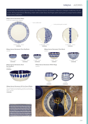 Inspired by the beautiful Azores Islands, the Mikasa Azores stoneware collection changes mealtimes into an exotic dining experience. Blending cream with ocean blue, this finger paint style gives a unique hand crafted look to this collection.