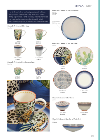 The Drift collection perfectly captures the latest lifestyle trend when searching for the authentic dining experience. Hand-printed patterns are mixed and matched across the collection with tribal mark-making, tropical prints and inky ombré effects.