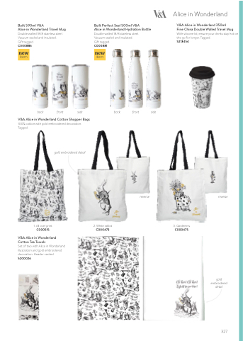 Set of two with Alice in Wonderland illustration and gold embroidered decoration. Header carded. 5200026