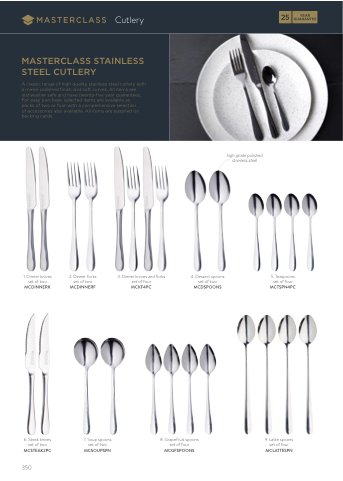 A classic range of high quality stainless steel cutlery with a mirror polished finish and soft curves. All items are dishwasher safe and have twenty-five year guarantees. For easy purchase, selected items are available as
