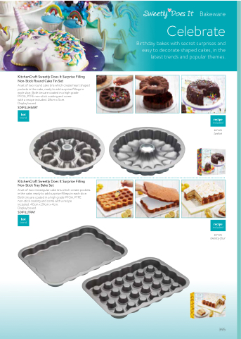 Birthday bakes with secret surprises and easy to decorate shaped cakes, in the latest trends and popular themes.
