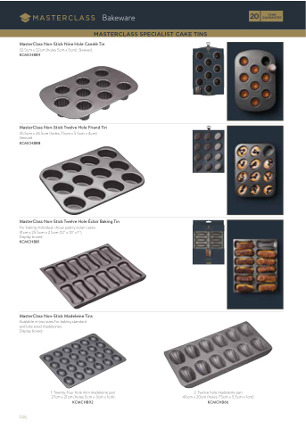 1. Twenty-four hole mini madeleine pan 27cm x 21cm (holes 5cm x 3cm x 1cm) KCMCHB92