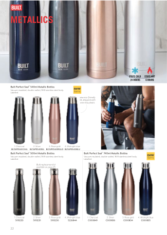BLTAPX540CHA BLTAPX540SIL BLTAPX540RGLD BLTAPX540BLU Built Perfect SealTM 500ml Metallic Bottles