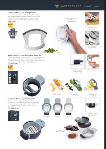 Space saving design folds to half its size with the blade enclosed for safe and space efficient storage in kitchen drawers. With a stainless steel blade and comfort grip handle to easily chop herbs, garlic and spices. Sleeved. MCSPSHACH