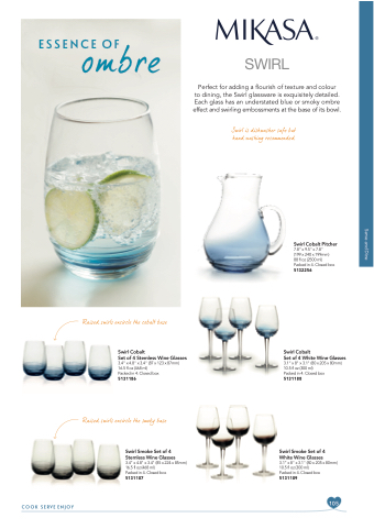 Perfect for adding a flourish of texture and colour to dining, the Swirl glassware is exquisitely detailed. Each glass has an understated blue or smoky ombre effect and swirling embossments at the base of its bowl.