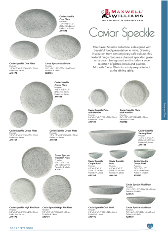 The Caviar Speckle collection is designed with beautiful food presentation in mind. Drawing inspiration from contemporary café culture, this textural range features a charcoal speckled glaze on a cream background and includes a wide selection of plates, bowls and platters.