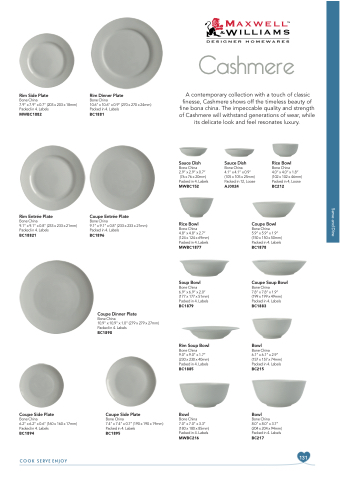 A contemporary collection with a touch of classic finesse, Cashmere shows off the timeless beauty of fine bona china. The impeccable quality and strength of Cashmere will withstand generations of wear, while its delicate look and feel resonates luxury.