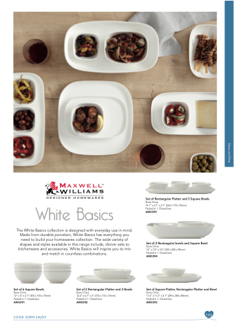 The White Basics collection is designed with everyday use in mind. Made from durable porcelain, White Basics has everything you need to build your homewares collection. The wide variety of shapes and styles available in this range include, dinner sets to kitchenware and accessories. White Basics will inspire you to mix and match in countless combinations.