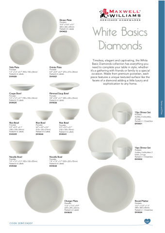 Timeless, elegant and captivating, the White Basic Diamonds collection has everything you need to complete your table in style, whether it’s a gathering with friends or family to a special occasion. Made from premium porcelain, each piece features a unique textured surface like the facets of a diamond adding a little luxury and sophistication to any home.