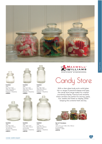 With a clear glass body and a solid glass lid in a range of practical shapes and sizes, the candy store range makes for a stylish countertop display. Practical and versatile, these canisters are perfect for storing, pasta, rice, sweets and treats on display, whilst keeping the contents fresh and dry.