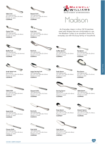 An Everyday classic in shiny 18/10 stainless steel with shapes that are comfortable to use, the Madison cutlery is an excellent choice for everyday use with the busy family or household.