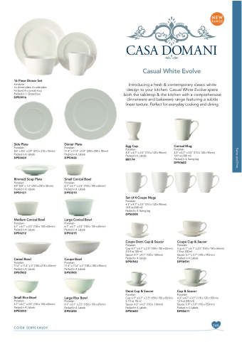 Introducing a fresh & contemporary classic white design to your kitchen. Casual White Evolve spans both the tabletop & the kitchen with a comprehensive dinnerware and bakeware range featuring a subtle linear texture. Perfect for everyday cooking and dining.