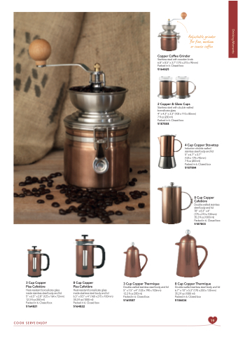 8 Cup Copper Cafetière Double-walled stainless steel body and lid 78”x8.3”x4”