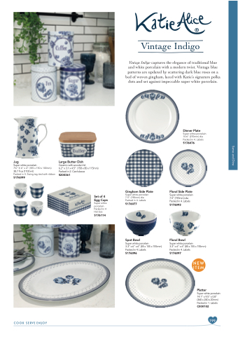 Vintage Indigo captures the elegance of traditional blue and white porcelain with a modern twist. Vintage blue patterns are updated by scattering dark blue roses on a bed of woven gingham, laced with Katie’s signature polka dots and set against impeccable super white porcelain.