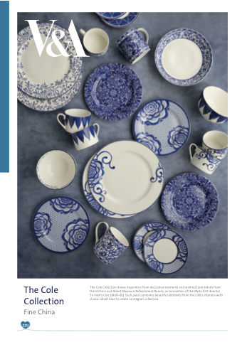 The Cole Collection draws inspiration from decorative elements and architectural details from the Victoria and Albert Museum Refreshment Rooms, an innovation of the V&A’s first director, Sir Henry Cole (1808–82). Each piece combines beautiful elements from the café’s interiors with classic cobalt blue to create an elegant collection.
