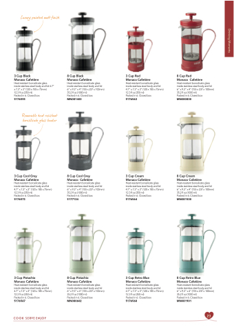 Monaco Cafetière Heat-resistant borosilicate glass inside stainless steel body and lid 4.7”x7.3”x3”(120x185x75mm) 12.3 fl oz (350 ml)