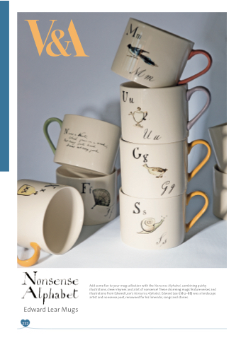 Add some fun to your mug collection with the Nonsense Alphabet, combining quirky illustrations, clever rhymes and a bit of nonsense! These charming mugs feature verses and illustrations from Edward Lear’s Nonsense Alphabet. Edward Lear (1812–88) was a landscape artist and nonsense poet, renowned for his limericks, songs and stories.