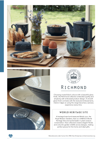 A heritage brand and treasured British icon, the Royal Botanic Gardens, Kew is a UNESCO World Heritage Site and world leader in plant science conservation. Kew collections weave elegant florals and colourful garden wildlife across designs, making perfect pieces for the home and ideal gifts.