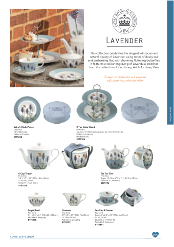 natural beauty of Lavender, using tones of dusky teal and enchanting lilac with charming fluttering butterflies. It features a colour engraving of Lavandula stoechas from the collection of the Library, Art & Archives, Kew.