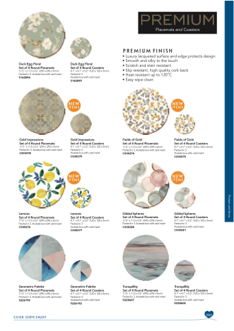 Set of 4 Round Placemats 11.5"x11.5x0.2"(290x290x5mm) Packed in 3. Acetate box with card insert 5228607