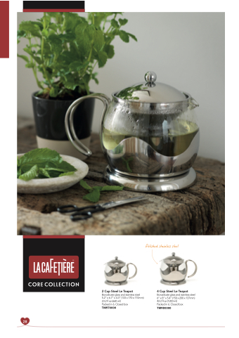 Borosilicate glass and stainless steel 5.2”x6.7”x4.3”(133x170x110mm) 23.2 fl oz (660 ml)