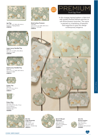 In this vintage-inspired pattern a little bird with golden-flecked feathers perches on soft white blossom branches. The scene is painted on a backdrop of beautiful duck egg blue to give this design contemporary elegance.