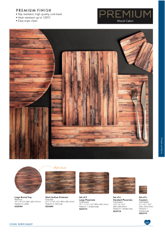 • Slip resistant, high quality cork back • Heat resistant up to 120°C