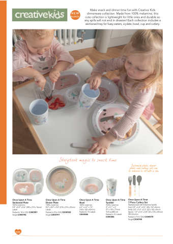 Make snack and dinner time fun with Creative Kids dinnerware collection. Made from 100% melamine, this cute collection is lightweight for little ones and durable so any spills will not end in disaster! Each collection includes a sectioned tray for fussy eaters, a plate, bowl, cup and cutlery.