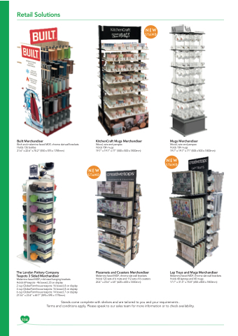2 cup Globe/Farmhouse teapots: 16 boxed, 8 on display 4 cup Globe/Farmhouse teapots: 16 boxed, 8 on dsiplay 6 cup Globe/Farmhouse teapots: 14 boxed, 7 on dsiplay 213.4” x 23.4” x 69.7” (595 x 595 x 1770mm)