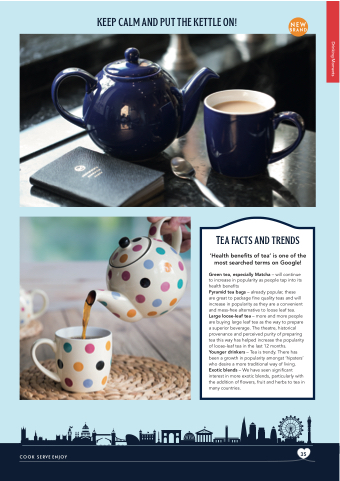 are great to package fine quality teas and will increase in popularity as they are a convenient and mess-free alternative to loose leaf tea. Large loose-leaf tea – more and more people are buying large leaf tea as the way to prepare a superior beverage. The theatre, historical provenance and perceived purity of preparing tea this way has helped increase the popularity of loose-leaf tea in the last 12 months. Younger drinkers – Tea is trendy. There has been a growth in popularity amongst ‘hipsters’ who desire a more traditional way of living. Exotic blends – We have seen significant interest in more exotic blends, particularly with the addition of flowers, fruit and herbs to tea in many countries.