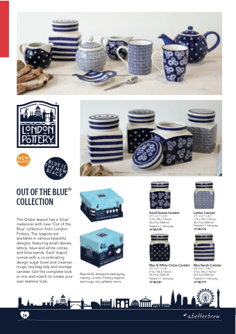 The Globe teapot has a ‘blue’ makeover with new ‘Out of the Blue’ collection from London Pottery. The teapots are available in various beautiful designs, featuring small daisies, lattice, blue and white circles, and blue bands. Each teapot comes with a co-ordinating design sugar bowl and creamer, mugs, tea bag tidy and storage canister. Get the complete look or mix and match to create your own teatime look.
