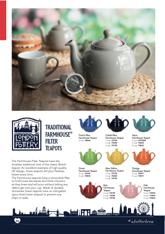 The Farmhouse Filter Teapots have the timeless traditional look of the classic British teapot. An excellent example of high-quality UK design, these teapots will pour flawless brews every time.