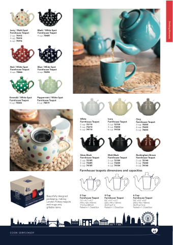 6 cup: 74140 Farmhouse teapots dimensions and capacities
