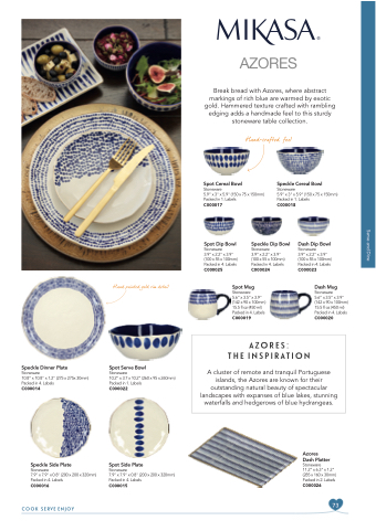 Break bread with Azores, where abstract markings of rich blue are warmed by exotic gold. Hammered texture crafted with rambling edging adds a handmade feel to this sturdy stoneware table collection.
