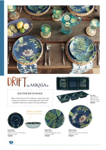Take meal times to the outdoors, away from the hustle and bustle to a secluded spot with Drift durable melamine outdoor dining collection.