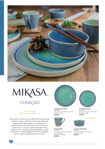 Bring exotic colour to your table with this uniquely crafted Curaçao collection. Pieces are distinctly shaped with raised sides on the plates and patterned with the deep blue and turquoise of ocean bays. A unique crackle glaze gives this collection an intriguing textured aesthetic, while pieces have a glossy glazed finish and unglazed feet to make it captivating to the touch.