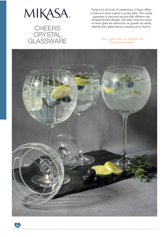 Perfect for all kinds of celebrations, Cheers offers a chance to raise a glass in quirky style. This crystal glassware is precision-etched with different yet complementary designs: the dots, lines and swirls on each glass are distinctive, so guests can easily identify their glass without needing wine charms.