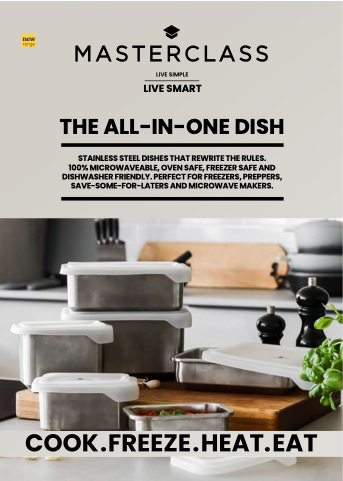 STAINLESS STEEL DISHES THAT REWRITE THE RULES. 100% MICROWAVEABLE, OVEN SAFE, FREEZER SAFE AND DISHWASHER FRIENDLY. PERFECT FOR FREEZERS, PREPPERS, SAVE-SOME-FOR-LATERS AND MICROWAVE MAKERS.