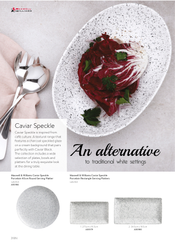Caviar Speckle is inspired from café culture. A textural range that features a charcoal speckled glaze on a cream background that pairs perfectly with Caviar Black.