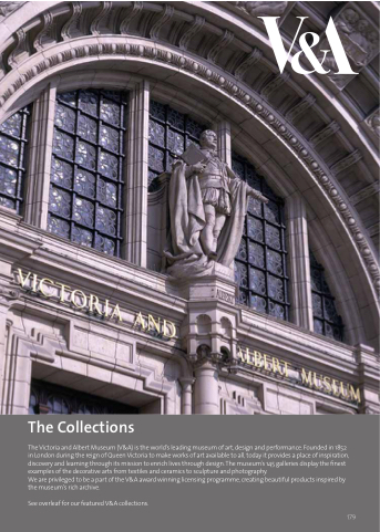 The Victoria and Albert Museum (V&A) is the world’s leading museum of art, design and performance. Founded in 1852 in London during the reign of Queen Victoria to make works of art available to all, today it provides a place of inspiration, discovery and learning through its mission to enrich lives through design. The museum’s 145 galleries display the finest examples of the decorative arts from textiles and ceramics to sculpture and photography.