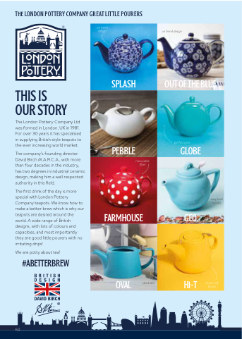 The London Pottery Company Ltd was formed in London, UK in 1981. For over 30 years it has specialised in supplying British style teapots to the ever increasing world market.