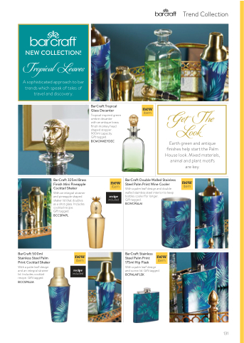 BarCraft 500ml Stainless Steel Palm Print Cocktail Shaker With a palm leaf design and an integral strainer lid. Includes cocktail recipe. Gift tagged. BCCSPALM