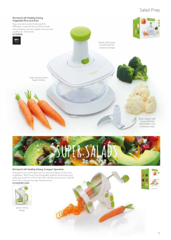 Designed to accommodate various sizes and shapes of fruit and vegetables. With three interchangeable stainless steel blades and sharp grip teeth for a firm hold. Anti-slip feet and easy turn handle fold in for compact storage. Display boxed.