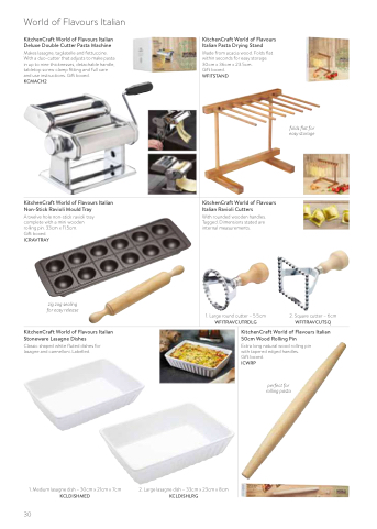 A twelve hole non-stick ravioli tray complete with a mini wooden rolling pin. 33cm x 11.5cm.