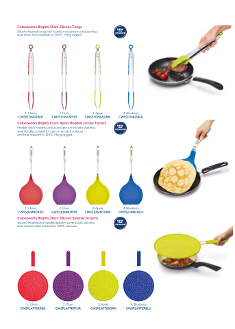Silicone headed and handled splatter screens with stainless steel shanks. Heat resistant to 260°C. Sleeved.