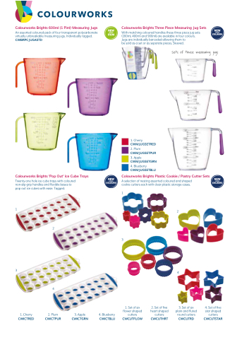 With matching coloured handles these three piece jug sets (200ml, 400ml and 900ml) are available in four colours. Jugs are individually barcoded allowing them to