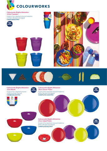 A pack of four assorted coloured melamine plates. Banded and tagged. CWMPLATE9ASSTPK4